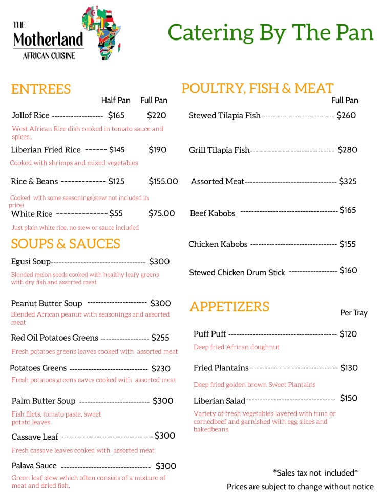 OMG where have you been for the past 5 years I have buying African Food from around Philly, I notice that your Food taste so good and Different thank you so Much your the best Cuisine in Philly keep up the Good Work!